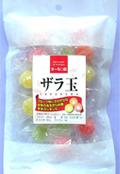 イチゴ、バナナ、オレンジ、メロン、グレープ等のフルーツ味にさわやかな甘味の白双糖をまぶした大粒のあめ玉です。 |
