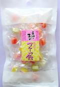 イチゴ、バナナ、オレンジ、メロン、グレープ等のフルーツ味にさわやかな甘味の白双糖をまぶした大粒のあめ玉です。 |